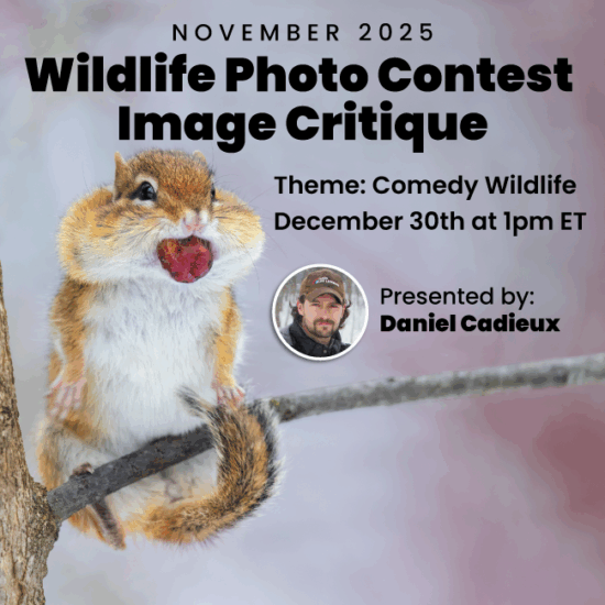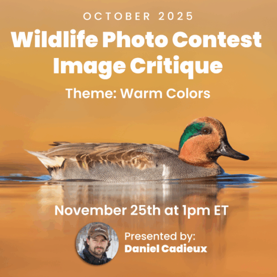 Connect with other wildlife photographers, share your photos, and learn from award-winning professionals through live virtual workshops, training, and seminars. Receive personalized feedback from your peers and get valuable insights from image critiques by working professionals.