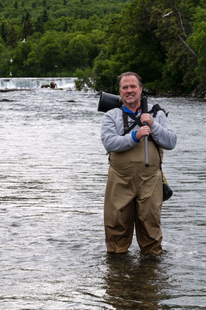 One morning, while walking along the river, we encountered multiple bears and had repeated chances to photograph them. As I repositioned myself for a better composition, I stumbled and fell into the river. Thankfully, I managed to keep my camera dry. By that afternoon, as we hiked back toward camp, I was soaked, cold, and eager to change into dry clothes.