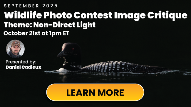 - Expert Photo Critique: Renowned wildlife photographer Daniel Cadieux will provide detailed feedback on 4–5 selected non-winning entries. She’ll share actionable insights to help photographers improve their craft and increase their chances of winning in future contests.