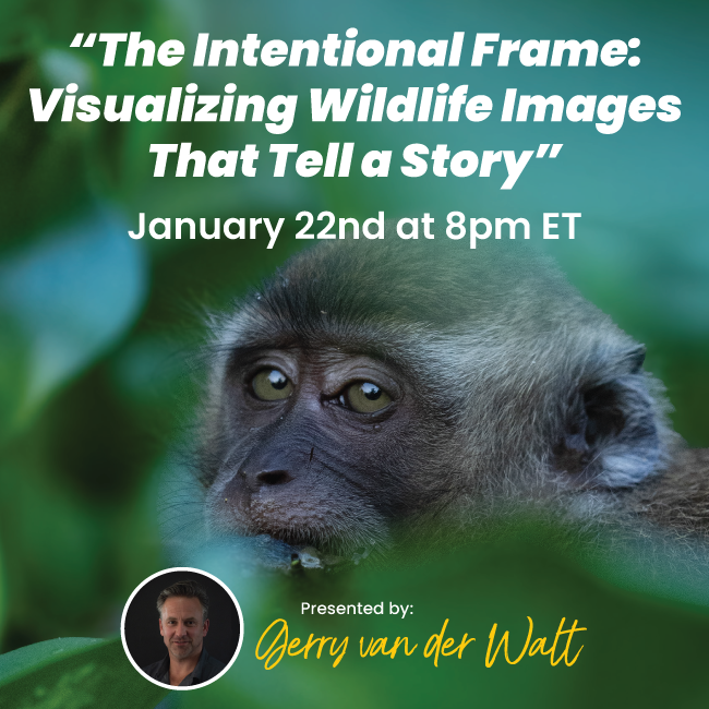 Gerry van der Walt explores how intention shapes stronger wildlife images, showing photographers how to visualize the final image before shooting and make more deliberate creative decisions in the field. This training focuses on moving beyond technical correctness to create images that tell meaningful, lasting stories.